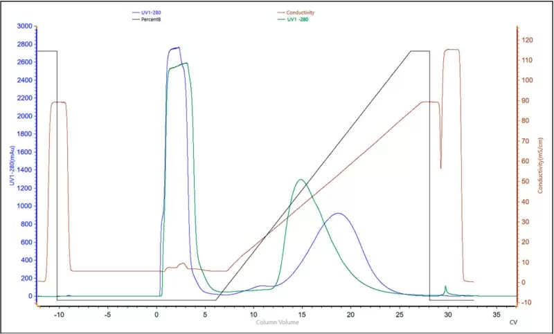 - Efficient elution using only 0.5 M NaCl, enabling simplified downstream processing